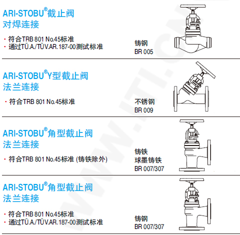 | 加强波纹管截止 | ARI-FABA-Plus | DN15-400 | PN16-40,ANSI150-300 | 铸铁,球墨铸铁,铸钢,锻钢,不锈钢 |