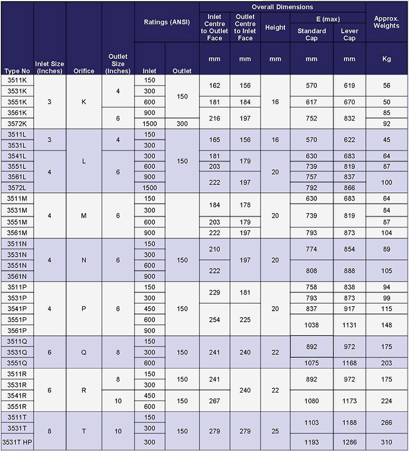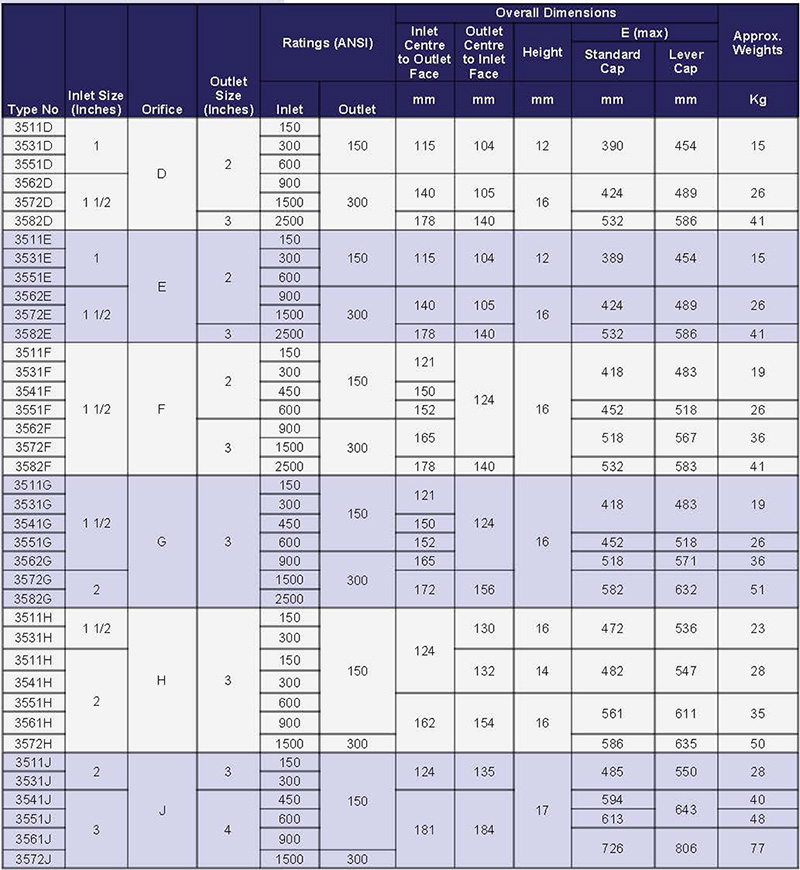 阀门的尺寸为1''x 2''到8''x 10'',孔从D到T并可以用铸钢、不锈钢和许多其他材料制造以适合应用, 法兰可按客户要求。阀门还可以提供带填料的杠杆或打开杠杆提升装置,限位开关以指示阀门的打开和关闭,限位环以将弹簧的调整限制在设定点,以便于重新设置时平衡波纹管 是可变的背压。